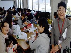 平成27年1月20日(火) いわき市子育てグループの母子達20組と白河市子育てグループの母子達20組がいわき市のアグリ農園いちご狩りに参集し、いちご狩りを楽しみその後近くの公民館でランチミーティング交流会を開きました。他地区の子育て支援の活動状況を聞いたり、同年齢の子ども達の成長の様子なども話題になりアンパンマンマーチの演奏などで楽しい交流会になりました。
