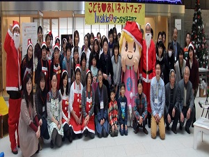 平成26年12月20日(土) こども♡あいネットフェアがいわき市文化芸術交流館アリオスにて開催されました。これはいわき市内の子育て支援に関わっている団体がネットワークを作り、お互い活動内容の紹介や情報交換等を行うイベントです。アリオスのこどもプロジェクト遊び工房とも連携し、各団体がさまざまなワークショップを実施しながら、親子で楽しみ16団体が参加し、来場者も150人ほど集まりました。クリスマスバージョンでサンタクロースやクリスマスソング、ハンドベルやフルート演奏もなされ、大きく盛り上がりました。