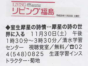県北支部の「ふくしま学遊塾」は地域に根ざした生涯学習講座を実施することができました。平成26年度も会員の協力と地域の人たちのとのコミュニケーションをもちながら楽しい「ふくしま学遊塾」にしていきたいと思います。